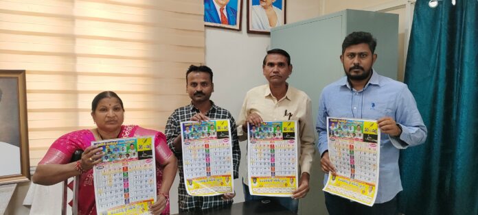 నేటి సాక్షి దినపత్రిక నూతన సంవత్సరం క్యాలెండర్ – 2025 ను జిల్లా కేంద్రంలోని నస్పూర్ లో గల సమీకృత జిల్లా కలెక్టరేట్ కార్యాలయంలోని పౌరసంబంధాల శాఖ అధికారి, కార్యాలయంలో డీపీఆర్ఓ శారద, అదే విధంగా జిల్లా కేంద్రంలోని అంజనీపుత్ర రియల్ ఎస్టేట్స్ ప్రైవేట్ లిమిటెడ్ కార్యాలయంలో అంజనీపుత్ర ఎస్టేట్స్ మేనేజింగ్ డైరెక్టర్ ఎండి పిల్లి రవి లు బుధవారం ఆవిష్కరించారు. ఈ సందర్భంగా డిపిఆర్ఓ శారద మాట్లాడుతూ, పత్రికలు ప్రజల పక్షాన మాత్రమే ఉండాలని, నిస్వార్ధంగా, నిబద్దతో వార్తలు రాయాలని, నిజాన్ని నిర్భయంగా వార్తలు రాస్తూ ప్రభుత్వానికి ప్రజలకు వారధిగా నిలవాలని సూచించారు. నేటి సాక్షి దినపత్రిక ప్రజల మన్ననలు పొందాలని, ప్రజా సమస్యలను వెలికి తీసి అధికారులకు చేరవేయడంలో ముందుండాలని తెలిపారు. ఈ కార్యక్రమంలో డిపిఆర్ఓ కార్యాలయ సిబ్బంది, రిపోర్టర్ ప్రభాకర్ లు పాల్గొన్నారు.