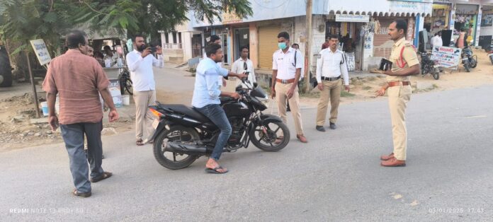 ప్రతి ద్విచక్ర వాహనదారుడు ఖచ్చింతంగా హెల్మెట్ పెట్టుకోవాలని ప్రొఫెషనల్ ఎస్సై హిమబిందు అన్నారు. ట్రాఫిక్ ఎఎస్ఐ నిరంజన్ మాట్లాడుతూ వాహనాలకు నెంబర్ ప్లేట్ లేకుండా వాహనాలు నడిపితే చట్టరీత్యా చర్యలు తీసుకుంటామని వాహనాల తనిఖీ నిరంతరంగా కొనసాగుతుందని ఆయన పేర్కొన్నారు. తనిఖీల్లో ట్రాఫిక్ పోలీస్ సిబ్బంది, రూరల్ పోలీస్ స్టేషన్ సిబ్బంది, తదితరులు పాల్గొన్నారు.