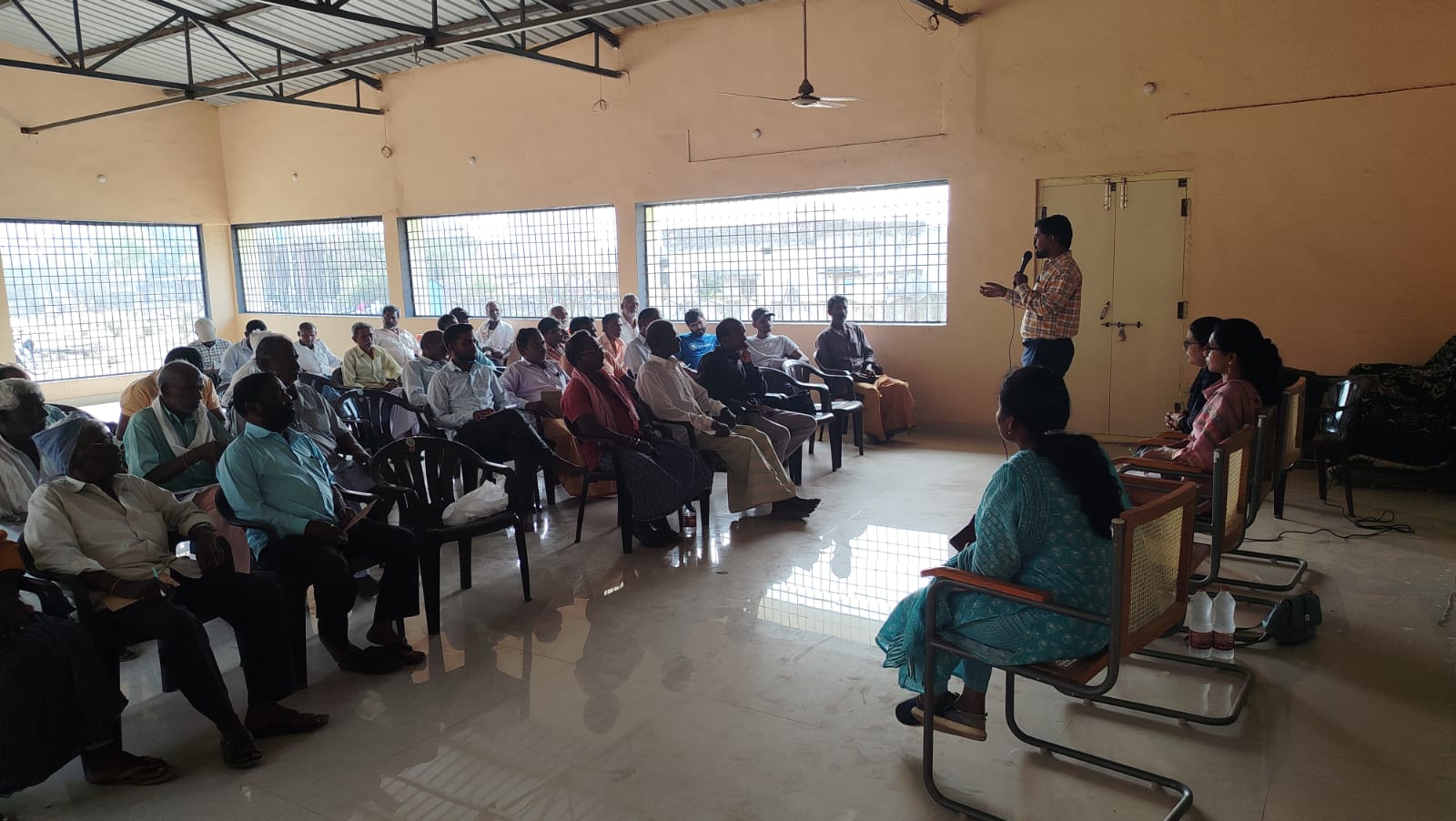 నేటిసాక్షి, రాయికల్: రాయికల్ మండలంలోని భూపతిపూర్ గ్రామంలోని రైతువేదికలో ఉద్యాన శాఖ ఆధ్వర్యంలో మామిడి తోటలలో ప్రస్తుతం చేపట్టే సస్య రక్షణ చర్యలపై రైతులకు శిక్షణా కార్యక్రమం సోమవారం నిర్వహించారు. ఈ శిక్షణ సదస్సులో పొలాస కీటక విభాగ శాస్త్రవేత్త స్వాతి మాట్లాడుతూ తేనెమంచు పురుగు రాకుండా తయోమెతోక్సిమ్ 4గ్రాములు లేదా ఫిప్రోనిల్ 20 ఎంఎల్ లేదా ఇమిడాక్లోప్రిడ్ 4 ఎంఎల్ 10 లీటర్ల నీటిలో కలిపి పిచికారి చేయాలి. పొలాస తెగుళ్ల విభాగ శాస్త్రవేత్త బలరాం మాట్లాడుతూ బూడిద తెగులు ఆశిస్తే హేక్సకొనాజోలు 20 ఎంఎల్ 10 లీటర్ల నీట్లో కలిపి స్ప్రే చేయాలి. బంక తెగులు రాకుండా ట్రైకోడర్మా విరిడే భూమిలో వేయాలని తెలిపారు. ఉద్యాన శాస్త్ర వేత్త స్వాతి మాట్లాడుతూ పిందెలు బఠాణి సైజు దశలో ఉన్నప్పుడు ప్లానోఫిక్స్ 2 ఎంఎల్, 10 లీటర్ల నీటిలో కల్పి స్ప్రే చేయడం ద్వారా పిందెలు రాలడాన్ని అరికట్టవచ్చన్నారు. చెట్లకు కంపోస్ట్, యూరియా, పోటాష్ ఎరువులు ఇవ్వాలని సూచించారు. పిందెలు నిమ్మకాయ సైజు దశలో 13-0-45 మందును 1కెజి 100 లీటర్ల నీటిలో కల్పి స్ప్రే చేయడం ద్వారా కాయ సైజు త్వరగా పెరుగుతుందన్నారు. పిందె దశలో సక్రమంగా నీటి తడులు అందించాలని లేదా డ్రిప్ ద్వారా నీటిని ఇవ్వాలని తెలిపారు. జగిత్యాల ఉద్యాన అధికారి కందుకూరి స్వాతి మాట్లాడుతూ మామిడిలో కోత అనంతరం జనుము లేదా జీలుగ వేసి దున్నినట్లయితే భూమి సారం పెరుగుతుందని,పూత దశలో తేనెటీగల పెంపకం కూడా చేబడితే అధిక శాతం పిందెలు కడతాయని తెలిపారు. కొత్తగా పండ్ల తోటలు పెట్టె రైతులకు మామిడి, జామ, నిమ్మ, బొప్పాయి, అరటి, డ్రాగన్ ఫ్రూట్ వంటి పంటలకు ఎంఐడిహెచ్ పథకం ద్వారా రాయితీ ఇవ్వబడునని తెలిపారు. అనంతరం భూపతిపూర్ గ్రామంలోని మామిడి తోటలను, ఆలూరు గ్రామంలోని పుచ్చ తోటలను పరిశీలించి రైతులకు తగు సూచనలు చేసారు. ఈ కార్యక్రమంలో ఆయిల్ పామ్ ప్రతినిథి రాజేష్, డ్రిప్ కంపెనీ ప్రతినిధి తిరుపతి, రైతులు పాల్గొన్నారు.