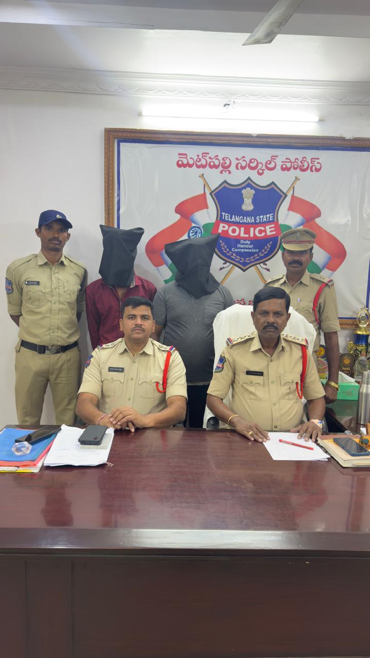 నేటి సాక్షి, మెట్ పల్లి రూరల్ : పట్టణ శివారులో గంజాయి తరలిస్తున్న ఇరువురిని అరెస్ట్ చేసినట్లు సిఐ నిరంజన్ రెడ్డి తెలిపారు. శనివారం సాయంత్రం ఎస్ఐ కిరణ్ కుమార్ తన సిబ్బందితో మండలంలోని వేంపేట ఎస్ఆర్ గార్డెన్స్ ముందు వాహనాలు తనిఖీ చేస్తుండగా ఇద్దరు వ్యక్తులు తమ ద్విచక్ర వాహనంపై రాగా వారిని ఆపి తనిఖీ చేశారు. తనిఖీలో వారి వద్ద గంజాయి పట్టుబడింది. దింతో వారిని అదుపులోకి తీసుకోని విచారణ చేపట్టాగా ఒకరు నునావత్ సాయి నాయక్ గ్రామము ఎర్రపూర్ తండా ఇబ్రహీంపట్నం మండలం, రెండవ వ్యక్తి అజ్మీర శ్రీనివాస్ నాయక్ సత్తెనపల్లి గ్రామం నిర్మల్ జిల్లా అని తెలిసింది.వారిద్దరు కలిసి నిర్మల్ జిల్లాలోని కొమ్మ గూడెం లో చౌహన్ రమేష్ నాయక్ అనే వ్యక్తి వద్ద మూడు వెల రూపాయలు పెట్టి గంజాయి కొనుగోలు చేసి వాటిని మెట్ పల్లి లో చిన్న చిన్న ప్యాకెట్లుగా తయారు చేసి ఎక్కువ ధరకు అమ్ముదామని వస్తుండగా పోలీసులు పట్టుకున్నట్లు తెలిపారు.వారిని అదుపులోకి తీసుకొని గంజాయిని, ద్విచక్ర వాహనాన్ని వారి వద్ద ఉన్న సెల్ ఫోన్ ను స్వాధీనం చేసుకున్నట్లు పేర్కొన్నారు. నిందితులు ఇద్దరిని రిమాండ్ కు తరలించమని,గంజాయి అమ్మిన చౌహాన్ రమేష్ పరారిలో ఉన్నాడని త్వరలోనే అతనిని పట్టుకొని తగు చర్యలు తీసుకుంటామని సిఐ తెలిపారు.ఈ కార్యక్రమంలో ఎస్ఐ కిరణ్ కుమార్, సిబ్బంది పాల్గొన్నారు.