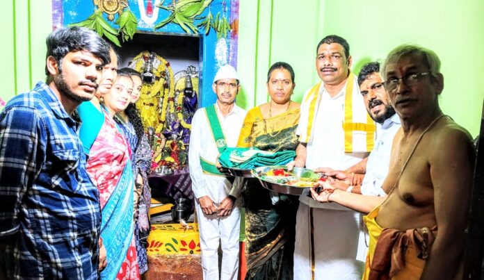 - శ్రీవారికి పట్టు వస్త్రాలు, చందన సుగంధ హారాలు సమర్పించిన