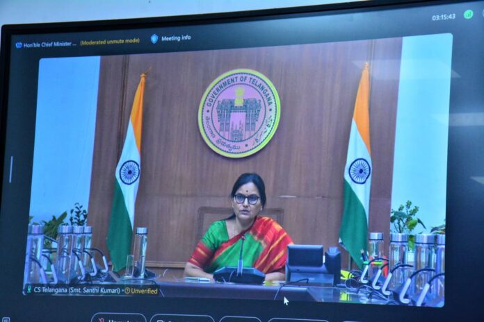 నేటి సాక్షి ఉమ్మడి వరంగల్ జిల్లా స్టాఫ్ రిపోర్టర్ (సందెల రాజు) : సోమవారం హైదరాబాద్ నుంచి రాష్ట్ర ప్రధాన కార్యదర్శి శాంతి కుమారి యాసంగి పంటలకు సాగునీటి సరఫరా గురుకులాల్లో రెగ్యులర్ గా తనిఖీలు, ప్లాస్టిక్ ఫ్రీ, తదితర అంశాలపై జిల్లా కలెక్టర్లతో నిర్వహించిన వీడియో కాన్ఫరెన్స్ లో వరంగల్ జిల్లా కలెక్టరేట్ వీడియో కాన్ఫరెన్స్ హాలు నుండి జిల్లా కలెక్టర్ డాక్టర్ సత్య శారద పాల్గొన్నారు. ఈ వీడియో కాన్ఫరెన్స్ లో రాష్ట్ర ప్రధాన కార్యదర్శి శాంతి కుమారి మాట్లాడుతూ.. రాబోయే 10 రోజుల పాటు అప్రమత్తంగా ఉండాలని, యాసంగి పంటల సంరక్షణకు అధికారులు చర్యలు తీసుకోవాలని సిఎస్ సూచించారు. ఎత్తి పోతల పథకాలకు, వ్యవసాయానికి విద్యుత్ సరఫరా ఆటంకం కలగకుండా చర్యలు తీసుకోవాలని అన్నారు. రిజర్వాయర్ల నుంచి విడుదల చేసిన ప్రతి నీటి చుక్కను సమర్థవంతంగా వినియోగించాలని అన్నారు. గురుకులా ల్లో రెగ్యులర్ గా తనిఖీలు చేస్తూ పిల్లలకు నాణ్యమైన భోజనం అందేలా చూడాలని అన్నారు. అనంతరం సంబంధిత జిల్లా అధికారులతో కలెక్టర్ మాట్లాడుతూ, పంటలను సంరక్షించే లా అధికారులు పటిష్ట చర్యలు తీసుకొని రాబోయే 10 రోజుల పాటు అప్రమత్తంగా ఉంటూ నీటి సరఫరా పర్యవేక్షించాలని, వ్యవసాయానికి విద్యుత్ సరఫరా లోటు రాకుండా చర్యలు తీసుకోవాలని సూచించారు. ఈ సమావేశంలో వ్యవసాయ శాఖ అధికారి అనురాధ, హార్టికల్చర్ అధికారి సంగీత లక్ష్మి నీటిపారుదల శాఖ ఇంజనీరింగ్ అధికారులు, సంబంధిత ఇతర శాఖల అధికారులు, తదితరులు పాల్గొన్నారు.