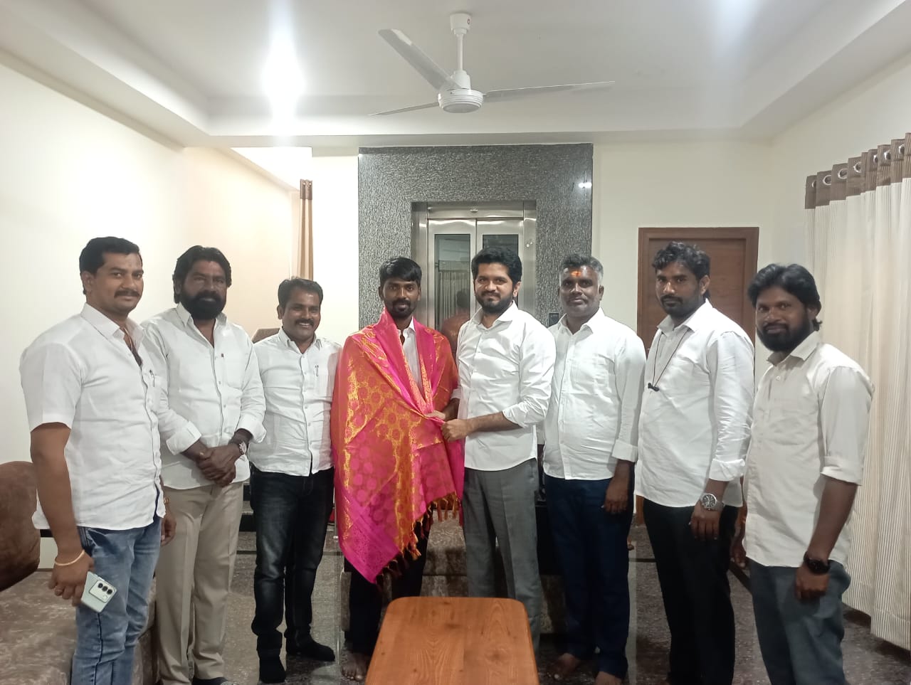 నేటి సాక్షి-హుజురాబాద్: జమ్మికుంట మార్కెట్ కమిటీ చైర్మన్ పుల్లూరి స్వప్న సదానందం ల కేసు హైకోర్టులో వాదించి గెలిపించిన టిపిసిసి లీగల్ సెల్ రాష్ట్ర జాయింట్ కన్వీనర్ హైకోర్టు న్యాయవాది జీడీ రవి తేజ ను కాంగ్రెస్ పార్టీ హుజురాబాద్ నియోజకవర్గ ఇంచార్జ్ వొడితల ప్రణవ్ సన్మానించారు. ఈ సందర్భంగా ఆయన మాట్లాడారు. కాంగ్రెస్ పార్టీకి సంబంధించిన లీగల్ సమస్యలు ఎప్పటికప్పుడు పరిష్కరించే దిశగా లీగల్ సెల్ రాష్ట్ర కన్వీనర్ జీడి రవితేజ పనిచేయాలని సూచించారు. హైకోర్టులో కేసు గెలవడం సంతోషకరమన్నారు. ఈ కార్యక్రమంలో టిపిసిసి ఎస్సి డిపార్ట్మెంట్ అట్రాసిటీ రాష్ట్ర ఇంచార్జ్ తిప్పారపు సంపత్, జమ్మికుంట మార్కెట్ కమిటీ చైర్మన్ పుల్లూరి స్వప్న సదానందం, కాంగ్రెస్ పార్టీ మండల అధ్యక్షులు కొలుగురు కిరణ్, యువజన కాంగ్రెస్ అసెంబ్లీ అధ్యక్షులు చల్లూరి రాహుల్, జాను, సిద్దు, తదితరులు పాల్గొన్నారు.