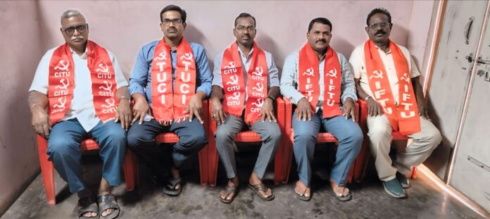నేటి సాక్షి గోదావరిఖని (రమేష్) : గోదావరిఖని సీఐటీయూ కార్యాలయంలో జేఏసీ సమావేశం జరిగింది. సీఐటీయూ, టి.యూ.సీ.ఐ, ఐ.ఎఫ్.టి.యూ సంఘాల నాయకులు వేల్పుల కుమారస్వామి, తోకల రమేష్, ఈ.నరేష్ లు మాట్లాడుతూ.. రామగుండం రీజియన్ పరిధిలోని OCP లలో పనిచేస్తున్న అన్ని విభాగాల కాంట్రాక్ట్ కార్మికులు గత 3 రోజులుగా సమ్మె చేస్తున్నారు. ఈ సమ్మెకు పూర్తిస్థాయిలో మద్దతు తెలుపుతున్నామని అన్నారు. గత కొన్ని సంవత్సరాలుగా కార్మికులకు కనీస వేతనాలు అమలు కావడం లేదన్నారు. లాభాలు ధ్యేయంగా సింగరేణి ఓ.బి.ప్రైవేట్ కంపెనీల జయమానులు పనిచేస్తున్నారని అన్నారు. కార్మికులకు చట్టాలను అమలు చేయాల్సి ఉన్నప్పటికీ వాటిని తుంగలో తొక్కి కార్మికులను బానిసలుగా మార్చి పనులు చేయించుకుంటున్నారని అన్నారు. అసెంబ్లీ ఎన్నికల్లో కాంగ్రెస్ పార్టీనీ గెలిపిస్తే స్థానిక ఎమ్మెల్యే మక్కాన్ సింగ్ రాజ్ ఠాకూర్ హై పవర్ కమిటీ వేతనాలు ఇప్పిస్తామని హామీ ఇచ్చారని అన్నారు. ఆ హామీనీ ఇప్పుడు నిలబెట్టుకోవాలని అన్నారు. అంతే కాకుండా కనీస వేతనాలతో పాటు కనీస సౌకర్యాలు, రక్షణ పరికరాలు కూడా ఇవ్వడం లేదన్నారు. ఒక ప్రక్క కార్మికులు సమ్మె చేస్తుంటే మరో ప్రక్క ప్రైవేటు యాజమాన్యాలు పోలీసులను పెట్టీ క్యాంపు లో ఉన్న ఇతర రాష్ట్రాల కార్మికులతో పనులు చేయించడానికి ప్రయత్నాలు చేస్తున్నారని అన్నారు. నిన్నటి నుండి చర్చల పేరుతో అధికార పార్టీ మరియు సింగరేణి యాజమాన్యం కావాలని కాలయాపన చేస్తుందనీ అన్నారు. రాష్ట్ర కనీస వేతనాల సలహా మండలి చైర్మన్, జే.బి.సి.సి.ఐ. సభ్యులు జనక్ ప్రసాద్ స్వయంగా చర్చల్లో ఉన్నారని అన్నారు. రెండవ రోజు చర్చలు కొనసాగుతున్నాయని ఈరోజైన జరుగుతున్న చర్చల్లో కార్మికులకు కనీస వేతనాలు అమలు చేయాడానికి ఒప్పందం చేసి కార్మికులకు న్యాయం చేయాలని అన్నారు. లేని పక్షంలో అన్ని కార్మిక సంఘాలను,కార్మికులను కలుపుకుని పెద్దయెత్తున పోరాటాలు నిర్వహిస్తామని అన్నారు. నాయకులు నెర్వట్ల నర్సయ్య,రాజేశం పాల్గొన్నారు.