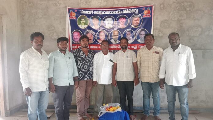 నేటిసాక్షి /మంగపేట : ములుగు జిల్లా మంగపేట మండల కేంద్రంలో ఎమ్మార్పీఎస్ జిల్లా నాయకులు గుగ్గిళ్ల సురేష్ మాదిగ ఆధ్వర్యంలో మార్చి 1న మాదిగ అమరవీరుల సంస్మరణ దినోత్సవం వేడుకలు సందర్బంగా మాదిగ రిజర్వేషన్ ఉద్యమంలో ప్రాణాలను అర్పించిన అమరులు అయిన వారి చిత్ర పటలకు పూల మాలలు తో స్మరించడం జరిగింది అనంతరం వారు మాట్లాడుతూ మాదిగ అమర వీరులారా జాతి త్యాగ ధనులారా మీ త్యాగాలను జాతి ఎన్నటికీ మరువదు. మీ పోరాట స్ఫూర్తిని ఎన్నటికీ విడువదు మీరు చిందించిన నెత్తుటి చుక్కల సాక్షిగా ఎస్సి వర్గీకరణను సాధించాం అది సంపూర్ణంగా ఉండేలా జాతి కోసం సమాజ హితం కోసం మందకృష్ణ మాదిగ సారధ్యంలో మీ యాదిలో ఆశయాల దారిలో శ్రమిస్తాం భవిష్యత్తు తరాలకు మీ త్యాగాలను చరిత్రగా అందిస్తాం వీరుల త్యాగాలను మరువలేము అని మాదిగ అమర వీరులను కొనియాడారు. ఈ కార్యక్రమం లో సీనియర్ నాయకులు వెంపెల్లి సమ్మయ్య మాదిగ పరికి శ్రీను మాదిగ వెంపెల్లి వీరాస్వామి మాదిగ లంజపెల్లి రవి మాదిగ నైనారపు కేశవులు మాదిగ గాజర్ల రాజు మాదిగ పాలొగొన్నారు.