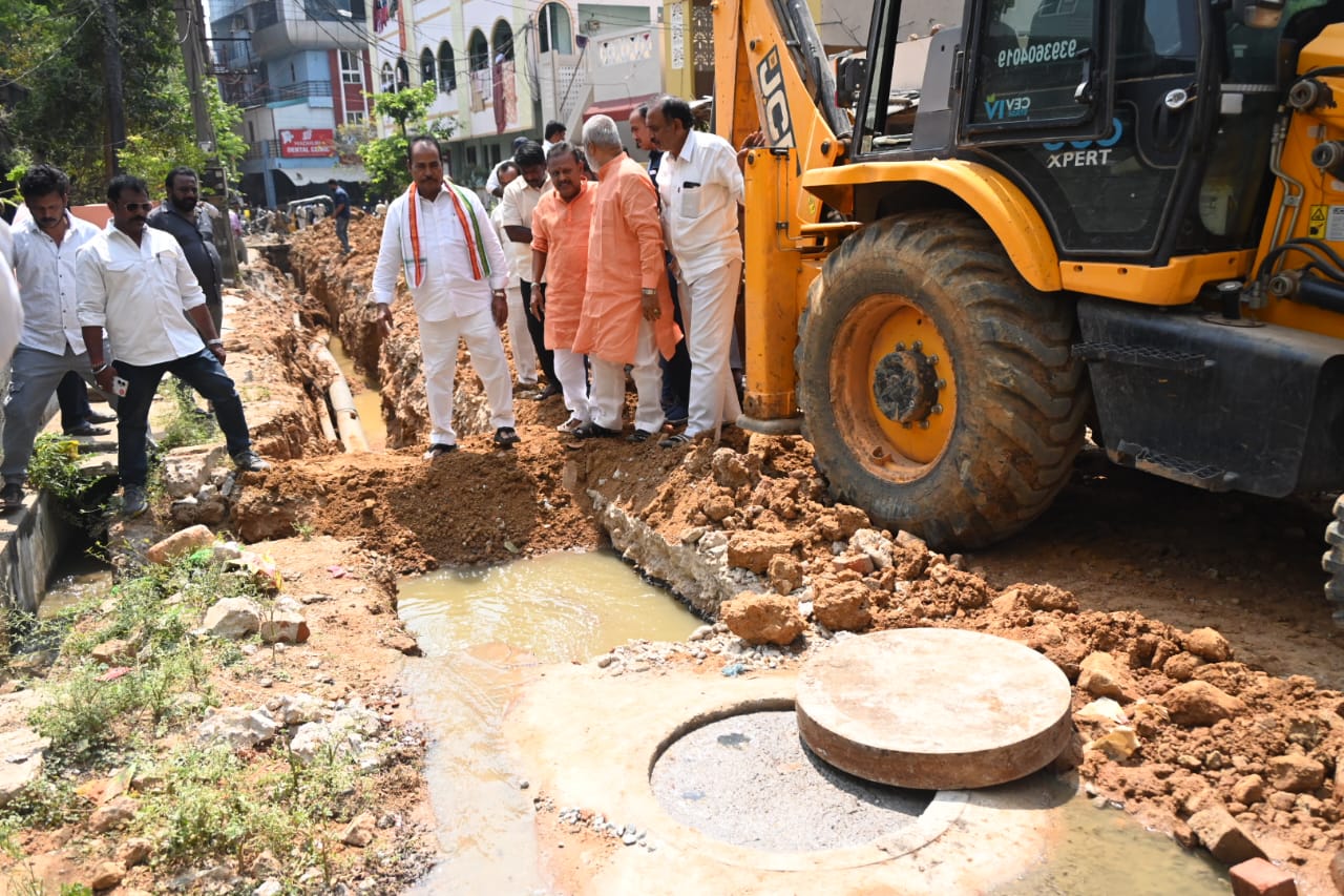 నేటి సాక్షి, తిరుపతి జిల్లా (బాదూరు బాల): తిరుపతి నగరంలోని 40వ డివిజన్లో జరుగుతున్న అండర్ గ్రౌండ్ డ్రైనేజీ, రోడ్డు పనులను ఎమ్మెల్యే ఆరణి శ్రీనివాసులు పరిశీలించారు. గురువారం మధ్యాహ్నం డిప్యూటీ మేయర్లు ఆర్ సి మునికృష్ణ, ముద్ర నారాయణ, మున్సిపల్ ఇంజినీరింగ్ అధికారులతో కలిసి పనులు జరుగుతున్న తీరును అడిగి తెలుసుకున్నారు. 16.25 లక్షలతో పనులు జరుగుతున్నట్లు అధికారులు ఎమ్మెల్యే ఆరణి శ్రీనివాసులు దృష్టికి తీసుకువచ్చారు. అలాగే ఎన్జీఓ కాలనీలో ప్రవహించే ప్రధాన కాలువ ను పరిశీలించారు. కాలువ పూడిక తీత తోపాటు మరమ్మత్తులు చేసి వాకింగ్ ట్రాక్ ఏర్పాటు చేయాలని స్థానికులు కోరారు. హోమ్ స్టే లు పెరిగిపోవడంతో తరుచూ డ్రైనేజీ నీరు పొంగి పొర్లుతున్నాయని వారు ఎమ్మెల్యే దృష్టికి తీసుకువచ్చారు. త్వరలో కాలువ మరమ్మత్తు పనులు పూర్తి చేసి వాకింగ్ ట్రాక్ ఏర్పాటు చేస్తామని ఎమ్మెల్యే చెప్పారు. ఈ కార్యక్రమంలో టిడిపి క్లస్టర్ దంపూరి భాస్కర్, మహేష్ యాదవ్ , కెవి రమణ, నారాయణ, జయప్రకాష్, అముదాల తులసి, జనసేన నాయకులు హరిశంకర్, సుబ్బారావు, కీర్తన, రమణ రాయల్ , గట్టు ప్రసాద్, సుధాకర్, రాజేష్ ఆచ్చారి, మునస్వామి, ఆళ్వార్ మురళీ, సానె శ్రీనివాస్ తదితరులు పాల్గొన్నారు.