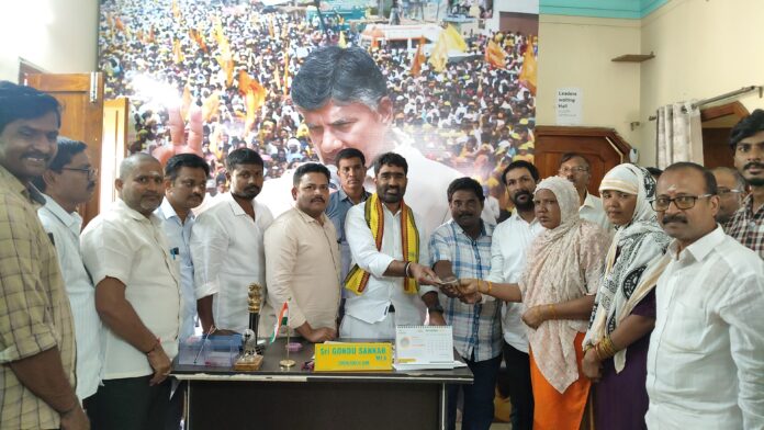 నేటి సాక్షి, పలాస కాశీబుగ్గ, రమేష్ కుమార్ పాత్రో: అగ్ని ప్రమాదంలో సర్వం కోల్పోయిన ఫాతిమా బేగం కుటుంబ సభ్యులను శ్రీకాకుళం ఎమ్మెల్యే గొండు శంకర్ అన్ని విధాలుగా ఆదుకుంటామన్నారు. శ్రీకాకుళం ఎమ్మెల్యే గొండు శంకర్ అన్నారు. రజాక్ కుటుంబ సభ్యులు అందజేసిన పదివేల రూపాయలు నగదును శ్రీకాకుళం ఎమ్మెల్యే శంకర్ కార్యాలయంలో సోమవారం బాధిత కుటుంబ సభ్యులకు అందజేశారు. ఈ సందర్భంగా ఎమ్మెల్యే మాట్లాడుతూ టిడిపికి రజాక్ లాంటి కార్యకర్తలు ఉండడం ఎంతో అభినందనీయమని కొనియాడారు. ప్రజలకు కష్టం వస్తే పార్టీ తరపున సాయం చేసేందుకు ముందుకు వచ్చిన రజక్ ను ప్రశంసించారు. పార్టీ పట్ల అంకిత భావం, చిత్తశుద్ధితో పనిచేసే వారికి ఉన్నత పదవులు లభిస్తాయని ఈ సందర్భంగా తెలిపారు. సర్వం కోల్పోయి కట్టుబట్టలతో రోడ్డు మీద పడిన ఫాతిమా కుటుంబ సభ్యులను ఆదుకునేందుకు టిడిపి నాయకులు, కార్యకర్తలు ముందుకు రావాలని ఆయన పిలిచారు. ఈ కార్యక్రమంలో రజాక్ కుటుంబ సభ్యులు ఎండి రఫీ, టిడిపి మైనార్టీ నాయకులు షేక్ నిజాముద్దీన్, బహుదూర్ భాష, మహమ్మద్ రఫీ, రెడ్డి గిరిజ శంకర్, ఎండు చిన్నారావు పంచిరెడ్డి అప్పలనాయుడు, ముద్దాడ రామకృష్ణ తదితరులు పాల్గొన్నారు.