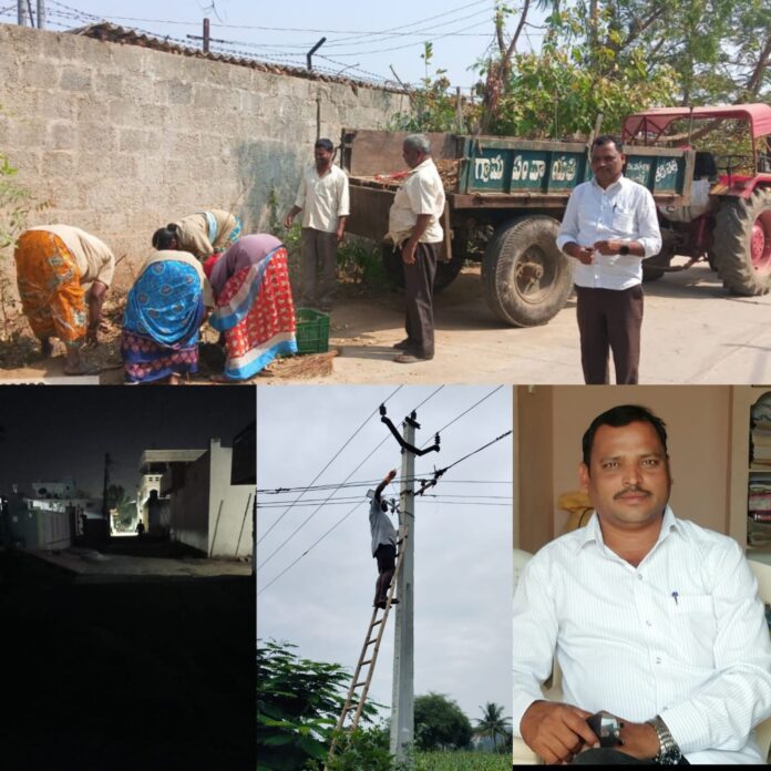 నేటిసాక్షి ప్రతినిధి, మహేశ్వరం (చిక్కిరి శ్రీకాంత్): రంగారెడ్డి జిల్లా మహేశ్వరం మండలం పెద్దపులి నాగారం గ్రామంలో ఏడవ వార్డులో మరియు ఐదవ వార్డులో గత కొన్ని రోజుల నుండి కరెంటు సమస్యలు ఉన్నాయి. విద్యుత్ దీపాలు వెలగట్లేదు అన్ని సమాచారం తెలియజేయడంతో అలాగే గ్రామంలో ఉన్నటువంటి సమస్యల పైన అంబేద్కర్ విగ్రహం నుండి నందిపల్లి రోడ్డు మార్గంలో నూతనంగా ట్రాన్స్ఫారం ని ఫిట్ చేసిన కారణంగా చెట్ల కొమ్మలను నరికి వేయడం జరిగింది. వెంటనే పంచాయతీ సెక్రటరీ జానయ్యకి తెలియజేయడం గ్రామపంచాయతీ సిబ్బంది అందర్నీ ఒకేసారి తీసుకుని వచ్చి ఆ చెత్త చెదారం అంతా తీసేయడం అలాగే ఈరోజు వీధి దీపాలు అన్ని స్తంభాలకు ఫిట్ చేయించడం ఇంకా గ్రామంలో ఎలాంటి సమస్యలు ఉన్నా కూడా నాకు తెలియపరచండి అని ఎస్ జానయ్య పంచాయతీ కార్యదర్శి తెలియజేశారు.