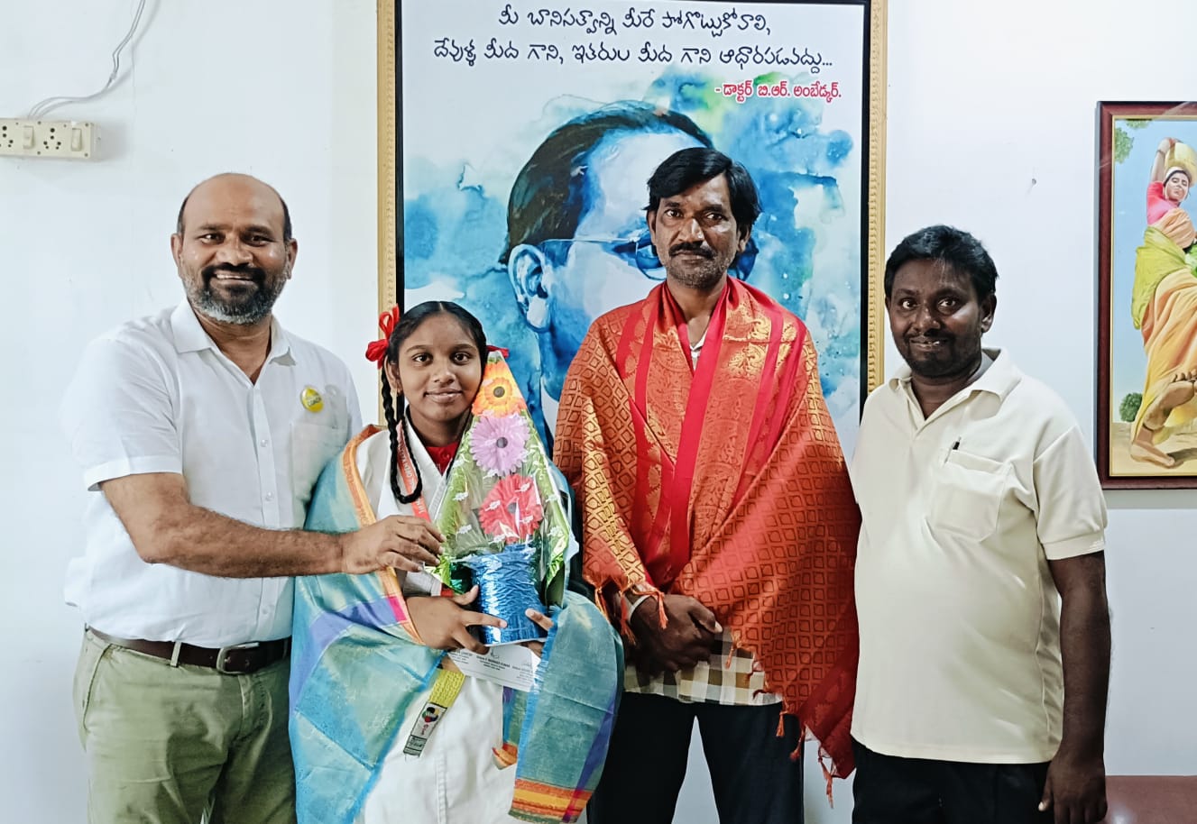 నేటి సాక్షి, జమ్మికుంట (మోరె ప్రశాంత్) : జమ్మికుంట మారుతినగర్కు చెందిన కావ్య జాతీయ స్థాయి కరాటే చాంపియన్షిప్లో బంగారు పతకం సాధించగా, మంగళవారం అంతర్జాతీయ క్రీడాకారుడు అంబాల ప్రభాకర్(ప్రభు) ఆమెను సత్కరించారు. సెయింట్ జోసెఫ్ స్కూల్లో 9వ తరగతి చదువుతున్న కావ్య, ఈ నెల 4న గ్లోబల్ చోటో కాన్ కరాటే డూ ఇండియా కరీంనగర్ జిల్లా అసోసియేషన్ ఆధ్వర్యంలో నిర్వహించిన జాతీయ స్థాయి కరాటే చాంపియన్ షిప్ పోటీల్లో పాల్గొని, మెడల్స్ కైవసనం చేసుకున్నది. ఈ సందర్భంగా ఆమెను ప్రభు శుభాకాంక్షలు తెలిపి మాట్లాడారు. జన్ను కావ్య కరాటే పోటీల్లో బంగారం పతకం సాధించడం ఈ ప్రాంతానికే కాకుండా కరీంనగర్ జిల్లా, తెలంగాణ రాష్ట్రానికి గర్వకారణం అని అభివర్ణించారు. అదే విధంగా ప్రత్యేక శిక్షణ అందిస్తూ వందలాది మందిని జాతీయ, అంతర్జాతీయ పోటీల్లో ప్రతిభ కనబరిచేలా తయారు చేస్తున్న హుజూరాబాద్ కరాటే మాస్టర్ జలీల్ను ప్రత్యేకంగా శాలువతో సత్కరించి అభినందించారు. భవిష్యత్తులో జాతీయ, అంతర్జాతీయ పోటీల్లో బంగారు పతకాలు సాధించాలని కోరారు. యువతి యువకులు చెడు వ్యసనాలకు దూరం ఉంటూ, కరాటే, స్పోర్ట్స్ అండ్ గేమ్స్పై దృష్టి పెట్టాలని కోరారు. చదువుతోపాటు ఆటల్లో రాణించాలని సూచించారు.