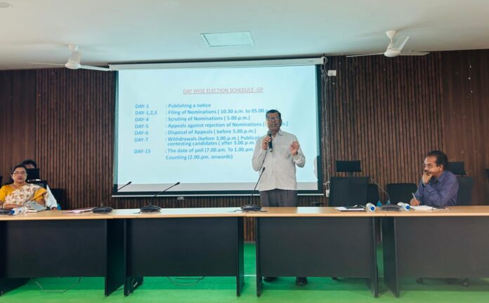నేటి సాక్షి, మంచిర్యాల జిల్లా ప్రతినిధి:– స్థానిక సంస్థలు ఎన్నికలు రానున్న సందర్భంగా ఎన్నికల ప్రక్రియ, విధుల నిర్వహణపై అధికారులు, సిబ్బందికి అందిస్తున్న, నేర్చుకున్న అంశాలను, భారత ఎన్నికల సంఘం నిబంధనలకు లోబడి తూచా తప్పకుండా ఆచరించాలని జిల్లా పంచాయతీ అధికారి వెంకటేశ్వర్ రావు తెలిపారు. బుధవారం జిల్లాలోని నస్పూర్ లో గల సమీకృత జిల్లా కార్యాలయాల భవన సమావేశ మందిరంలో జిల్లా వ్యవసాయ శాఖ అధికారి కల్పన, జిల్లా వెనుకబడిన తరగతుల అభివృద్ధి శాఖ అధికారి పురుషోత్తం నాయక్ లతో కలిసి స్టేజ్-1, 2 ఆర్ఓలు, స్టేజ్-1 ఏఆర్ఓ, మండల పరిషత్ అభివృద్ధి అధికారులు, పంచాయతీరాజ్ శాఖ అధికారులతో స్థానిక సంస్థల ఎన్నికలలో ఎన్నికల ప్రవర్తనా నియమావళి, హ్యాండ్ బుక్ నిర్వహణ, ఎన్నికల ప్రక్రియపై శిక్షణ కార్యక్రమం నిర్వహించారు. ఈ సందర్భంగా జిల్లా పంచాయతీ అధికారి మాట్లాడుతూ, రాబోవు సర్పంచ్, వార్డు సభ్యులు, ఎంపిటిసి, జెడ్పిటిసి స్థానిక సంస్థల ఎన్నికలలో విధులు కేటాయించబడిన అధికారులు, సిబ్బంది తమ విధులను సమర్థవంతంగా నిర్వహించాలని, ఈ క్రమంలో అందిస్తున్న శిక్షణను ఏకాగ్రత్తతో నేర్చుకోవాలని, ప్రతి అంశాన్ని నిశితంగా పరిశీలించి ఎన్నికల సంఘం నిబంధనల ప్రకారం నడుచుకోవాలని తెలిపారు. ఎన్నికల నోటిఫికేషన్ వచ్చినప్పటి నుండి ఎన్నికల ప్రవర్తనా నియమావళి గడువు ముగిసేంత వరకు అధికారులు, సిబ్బందికి కేటాయించిన విధులను ఎలాంటి పొరపాట్లకు తావు లేకుండా పారదర్శకంగా, సమర్థవంతంగా నిర్వహించాలన్నారు. నామినేషన్, పరిశీలన, ఉపసంహరణ ప్రక్రియలో నిబంధనలను తప్పనిసరిగా అమలు చేయాలని, జాగ్రత్తగా వ్యవహరించాలని సూచించారు. సర్పంచ్, ఎంపిటిసి స్థానాలకు గులాబి రంగు బ్యాలెట్ పేపర్, జెడ్పిటిసి, వార్డు సభ్యులకు తెలుపు రంగు బ్యాలెట్ పేపర్ వినియోగించడం జరుగుతుందని తెలిపారు. ఎన్నికలలో భాగంగా రిటర్నింగ్, సహాయ రిటర్నింగ్, జోనల్, ప్రిసైడింగ్, పోలింగ్ అధికారులు, కౌంటింగ్ సూపర్వైజర్, సహాయకులు ఇతర సిబ్బందిని నియమించడం జరుగుతుందని, ఎన్నికల నిర్వహణకు అవసరమైన ఫారాలు, కవర్లు, పోలింగ్ సామాగ్రి అవసరమైన మేరకు సమకూర్చడంతో పాటు అదనంగా అందుబాటులో ఉంచడం జరుగుతుందని తెలిపారు. ఎన్నికల విధులు నిర్వహించే అధికారులు, సిబ్బంది తమ ఓటు హక్కును పోస్టల్ బ్యాలెట్ తో వినియోగించుకోవచ్చని తెలిపారు. ఎన్నికల నిర్వహణ పకడ్బంధీగా చేపట్టాలన్నారు. ఈ కార్యక్రమంలో సంబంధిత అధికారులు పాల్గొన్నారు.
