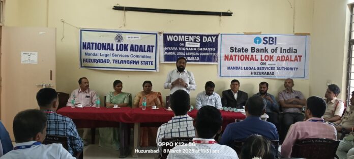 నేటి సాక్షి, హుజురాబాద్ ఆర్.సి.(రాఘవుల శ్రీనివాసు): హుజురాబాద్ కోర్టు ఆవరణలో అంతర్జాతీయ మహిళా దినోత్సవ వేడుకలను, మెగాలోక్ అదాలత్ ను ఘనంగా నిర్వహించారు. ఈ సందర్భంగా సబ్ జడ్జీ పి.బి కిరన్ కుమార్ మాట్లాడుతూ మహిళలు చైతన్యవంతం అయితే ఆ కుటుంబం మొత్తం బాగుపడుతుందని, మహిళలే సమాజాభివృద్ధికి, దేశాభివృద్ధి కి దోహదపడుతుందని అన్నారు. దేశంలో అన్నిరంగాలలో మహిళలు రాణిస్తున్నారని ప్రశంసించారు. ఈ కార్యక్రమంలో మెజిస్ట్రేట్ లు జి.స్వాతి, పద్మ సాయిశ్రీ, బార్ అసోసియేషన్ అధ్యక్షులు గోస్కుల శ్రీనివాస్, ఏజీపీ గుర్రం శ్రీనివాస్, సిఐ లు తిరుమల్ గౌడ్, వి. రవి, బార్ అసోసియేషన్ కార్యదర్శి మట్టెల తిరుపతి, లోక్ అదాలత్ సభ్యులు వై. అరుణ్ కుమార్, కోర్టు సిబ్బంది, కోర్టు పోలీసులు తదితరులు పాల్గొన్నారు.