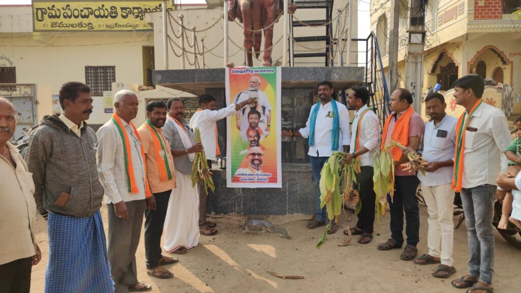 దాదాపు 40 సంవత్సరాలుగా పసుపు పొసుపు ఏర్పాటు కోసం చేస్తున్న సుదీర్ఘ పోరాటంలో భారతీయ జనతా పార్టీ ప్రభుత్వం ఆధ్వర్యంలో భావి భారత ప్రధానమంత్రి దామోదరదాసు నరేంద్ర మోడీ సహకారంతో బిజెపి నాయకులు నిజామాబాద్ పార్టమెంటు సభ్యులు అరవింద్ ధర్మపురి కృషితో పసుపు బోర్డును నిజామాబాద్ లో మకర సంక్రాంతి సందర్భంగా కేంద్రపరిశ్రమల శాఖమంత్రి పియుస్ గోయాల్ ఏర్పాటు జరిగిందని అభినందిస్తు జగిత్యాల జిల్లా ఇబ్రహీంపట్నం మండలంలోని వేములకుర్తి గ్రామంలో భారతీయ జనతా పార్టీ నాయకులు, రైతు ఐక్యవేదిక ఆధ్వర్యంలో రైతులు గ్రామపంచాయతీ కార్యాలయ ఆవరణ చత్రపతి శివాజీ విగ్రహం ముందు ప్రధానమంత్రి మోది ,కేంద్ర హోంశాఖ మంత్రి అమిషా, హోం మంత్రి కిషన్ రెడ్డి ,కేంద్ర సహయ మంత్రి బండి సంజయ్, నిజామాబాద్ ఎంపి అరవింద్ ధర్మపురి చిత్రపటాలను ఎర్పాటు చేసి పాలభిషేకం చేసి పసుపు రైతులు ,నాయకులు సంబరాలు జరుపుకున్నారు.ఈసందర్భంగా భారతీయ జనతా పార్టీ ఇచ్చిన మాట ప్రకారం పసుపు భోర్డు ఏర్పాటు చేసిందని,అదే తరహాలో కోరుట్ల నియెజిక వర్గం లోని ముత్యం పెట్ లోని నిజం షుగర్ ఫ్యాక్టరీని ప్రారంభిస్తె రైతులకు మరింత మేలు జరుగుతుందని అభిప్రాయం వ్యక్తం చేశారు.ఈకార్యక్రమంలో కోటగిరి ప్రభాకర్, ఎడిపెళ్ళి భుమన్న, పోతరాజు పెద్ధరాజం, దోనికెన రాజేష్,బెల్లాల రాజం,రాధరపు దేవదాస్,మాలేపు శ్రీనివాస్, కోటగిరి వెంకటస్వామి, అరె రమేష్ చంద్ర రెడ్డి, గుజ్జె గంగాధర్,దోనికెన మహేంధర్,అరె రమేష్, రాపర్తి దేవేంధర్, అరె మల్లయ్య,దోనికెన ప్రశాంత్ ,తరి గంగారాం, మాలేపు భుమయ్య,కట్కం నారయణ, పట్నం నర్సయ్య రైతులు తదితరులు పాల్గొన్నారు.