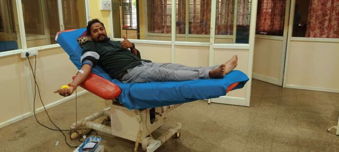 నేటిసాక్షి, గన్నేరువరం, ( బుర్ర అంజయ్య గౌడ్): మండలం కేంద్రంనికి చెందిన మీసాల అనిత కరీంనగర్ లోని ప్రభుత్వ ఆసుపత్రిలో చికిత్సకు అత్యవసర పరిస్థితుల్లో రక్తం కావాలని డాక్టర్ల సూచన మేరకు కరీంనగర్ జిల్లా బీజేవైఎం స్వచ్ఛభారత్ కన్వీనర్ కూన మహేష్ ముందుకు వచ్చే రక్త దానం చేశాడు. కూన మహేష్ ను పలువురు అభినందించారు.